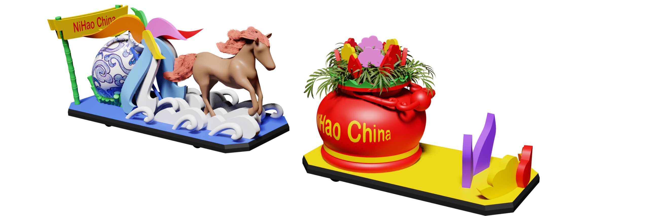 We proudly present ‘Galloping Harmony’ the 2026 China-themed float for Bloemencorso Bollenstreek. The float features two main sections. At the front, a powerful galloping horse, symbolizing the Chinese Year of the Horse, leaps forward upon clouds of good fortune and progress. These clouds flow from a classical fusion vase at the rear, which combines traditional Dutch and Chinese ceramic patterns, embodying centuries of cultural exchanges. The vase overflows with vibrant flowers, representing the flourishing friendship and shared aspiration between our peoples. Adjacent to the horse, the ‘Nihao! China’ logo extends a warm and open invitation for visiting and exploring China. Through this floral journey, the float celebrates the dialogue of civilizations, where mutual respect blooms into shared beauty.